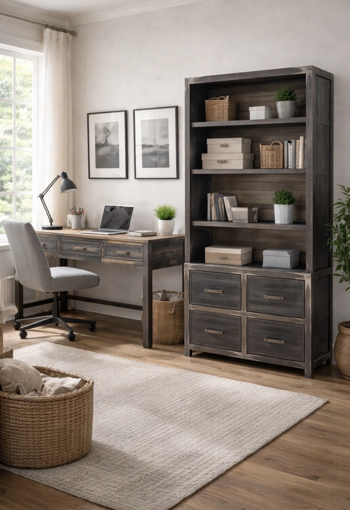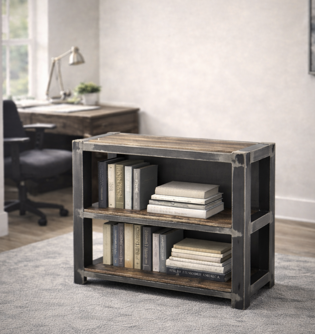Bring function and character into your space with our handcrafted Industrial Desk & Bookshelf Collection. Designed with a balance of warm wood tones and rugged steel accents, this set delivers a bold yet refined look that fits seamlessly into home offices, studios, or creative spaces.